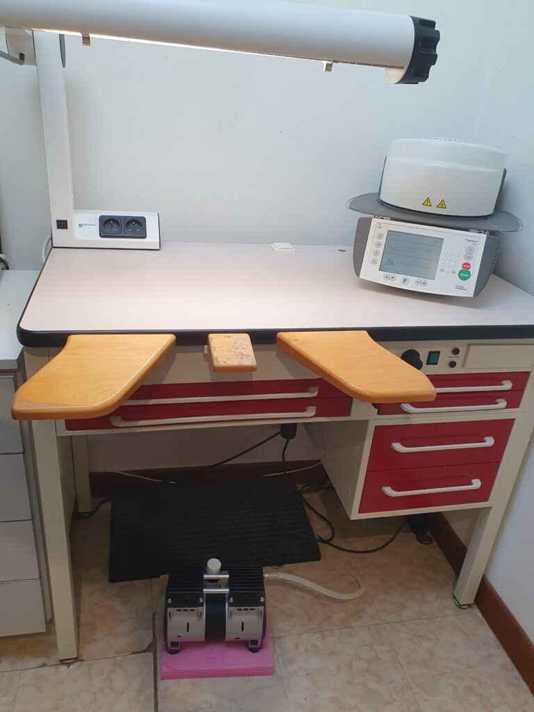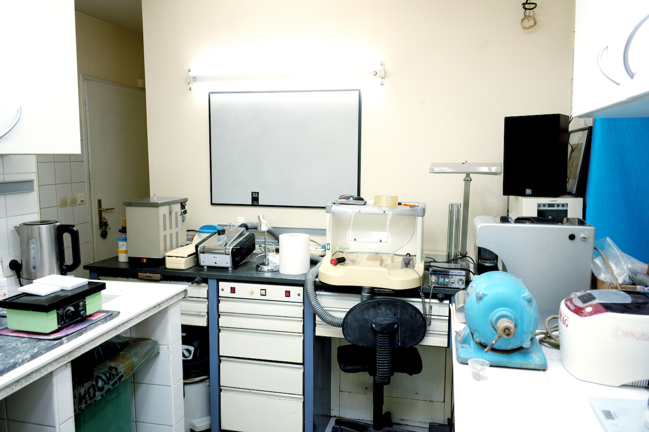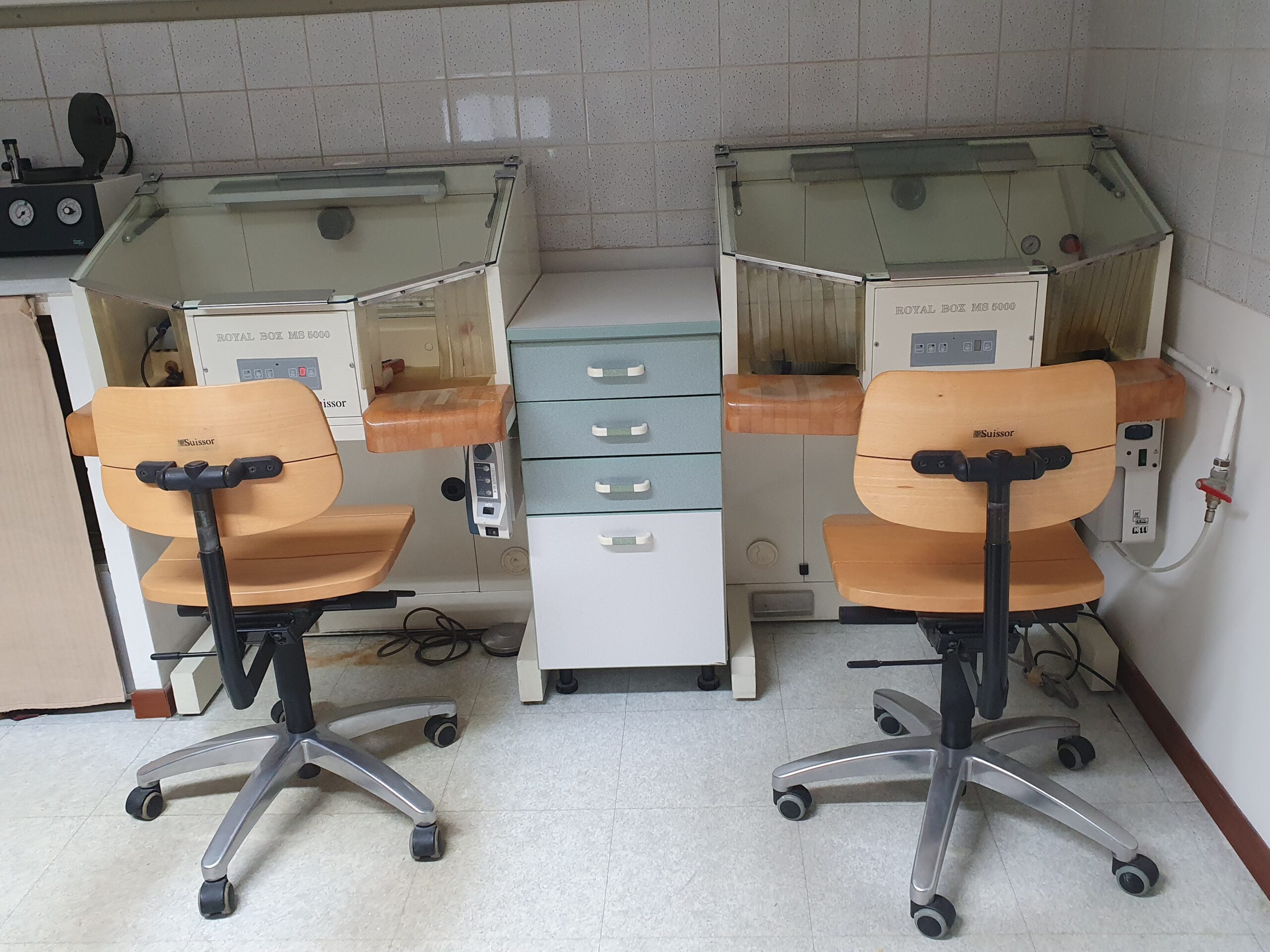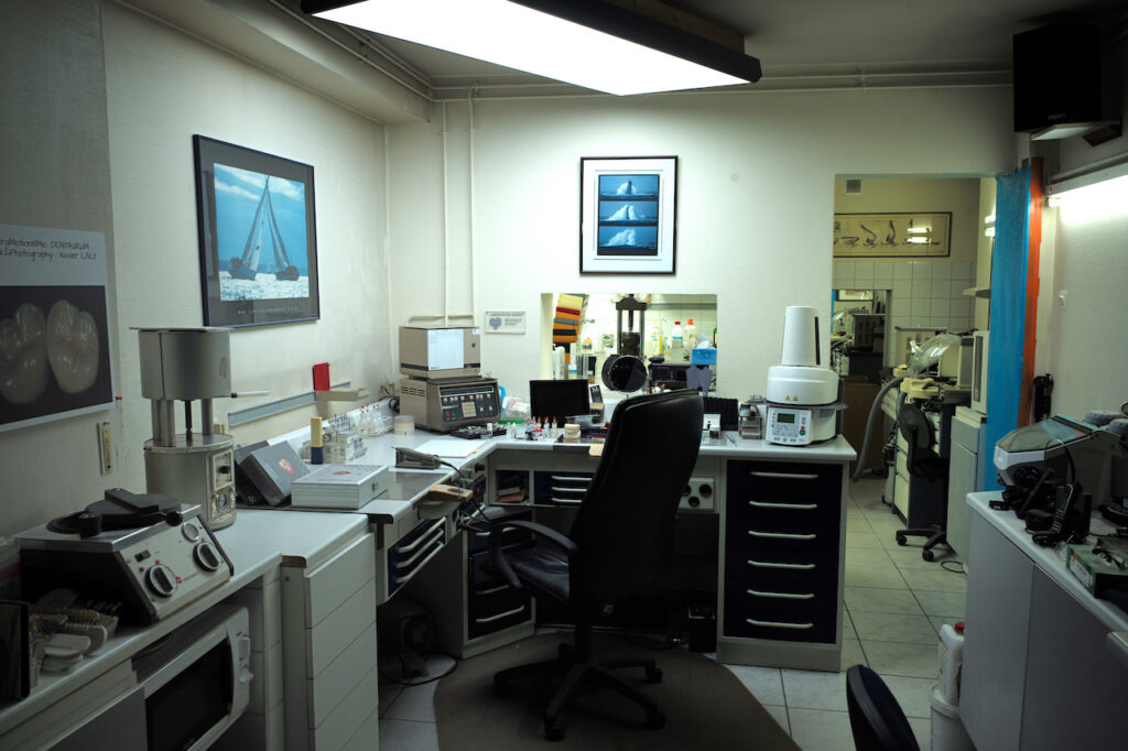 Laboratoire bien équipé et bien installé. Usineuses métal et zircone.