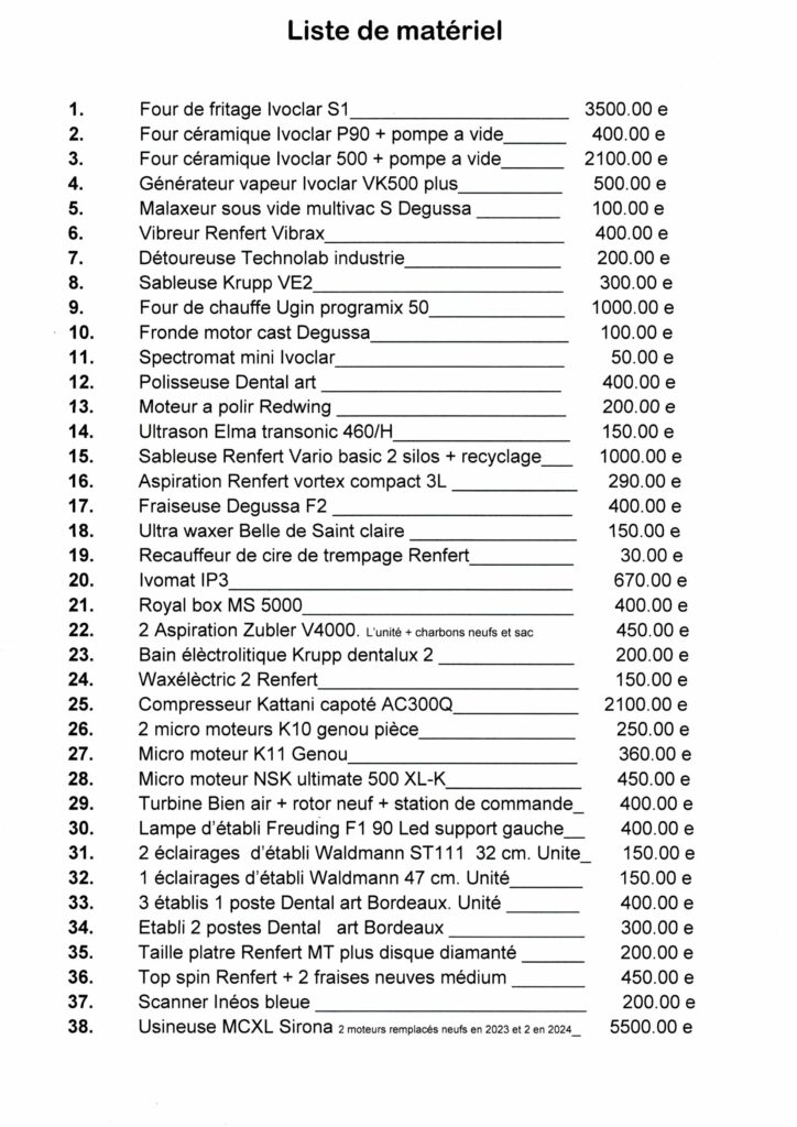 En prévision de départ à la retraite, vend laboratoire adjointe, conjointe, implants.